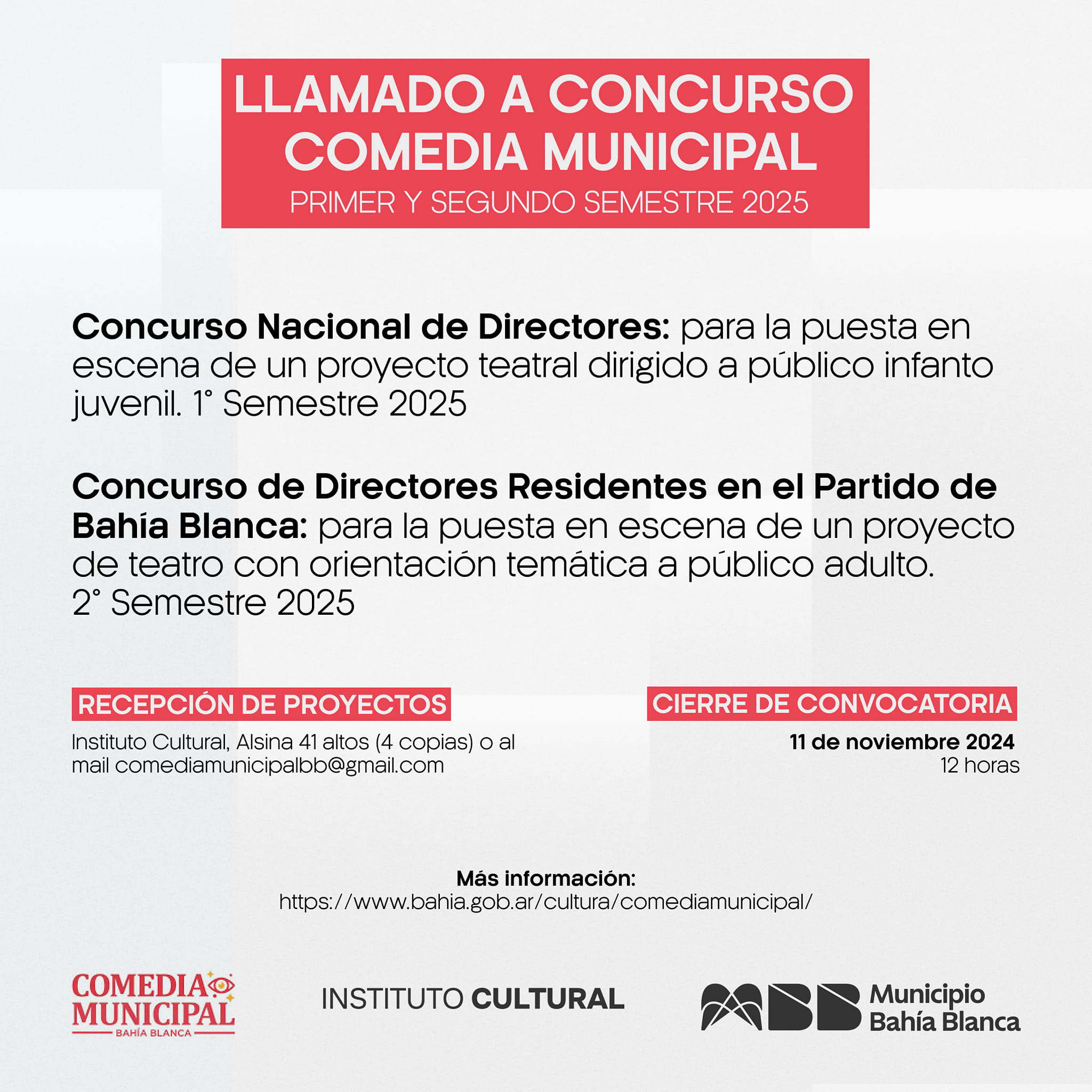 Más información y cláusulas completas en: https://www.bahia.gob.ar/cultura/comediamunicipal/