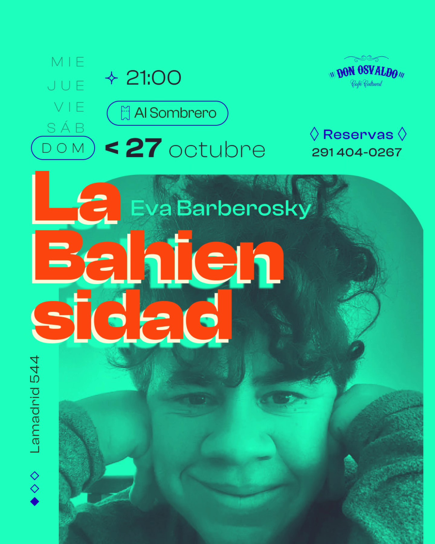 ¿Cuando? Domingo 27 de octubre a las | 21.00hs A la gorra conciente ( a partir de 2000 $) 291 470-8634